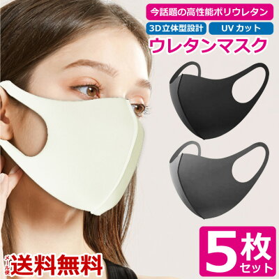 【5枚セット】 マスク 洗える 男女兼用 ウレタンマスク 白 黒 グレー 3D立体マスク レギュラーサイズ 予防 花粉 風邪 かぜ ウイルス 対策 大人用 おしゃれ UV フィット ソフト 清潔 快適マスク 送料無料 5/14発送
